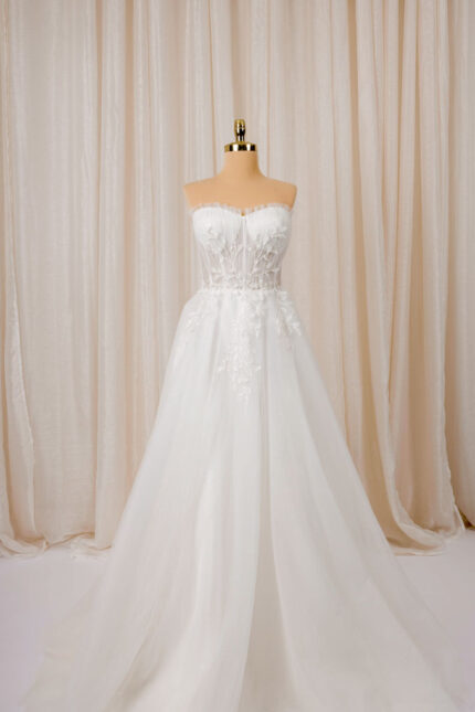 Empire trouwjurken staan bekend om hun hoge taille en vloeiende pasvorm. Ze zijn ideaal voor bruiden die een romantische, luchtige en comfortabele stijl zoeken. Onze collectie biedt zowel klassieke als moderne ontwerpen, beschikbaar om te kopen of te huren. Bij Viento Bridal zorgen we voor maatwerk, persoonlijke begeleiding en een jurk die echt bij jou past.