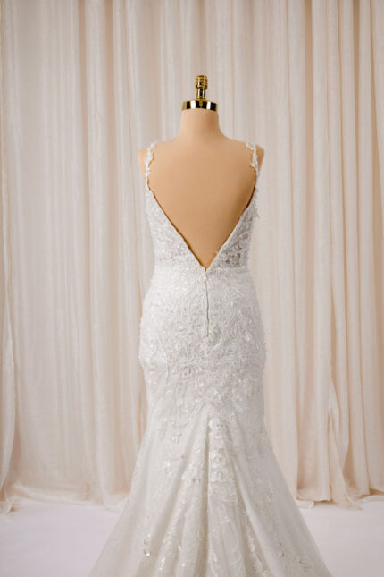 Zeemeermin trouwjurk met V-hals, tule bandjes en strassdetails – Viento Bridal